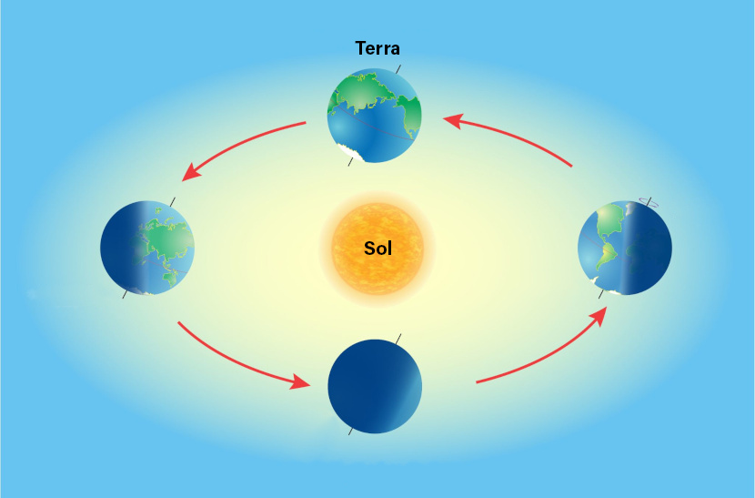 Em razão do movimento de rotação da Terra (deslocamento da Terra em torno do Sol), o Sol não consegue iluminar a Terra por completo, dessa forma, todas as regiões ficam escuras quando não estão voltadas para ele.