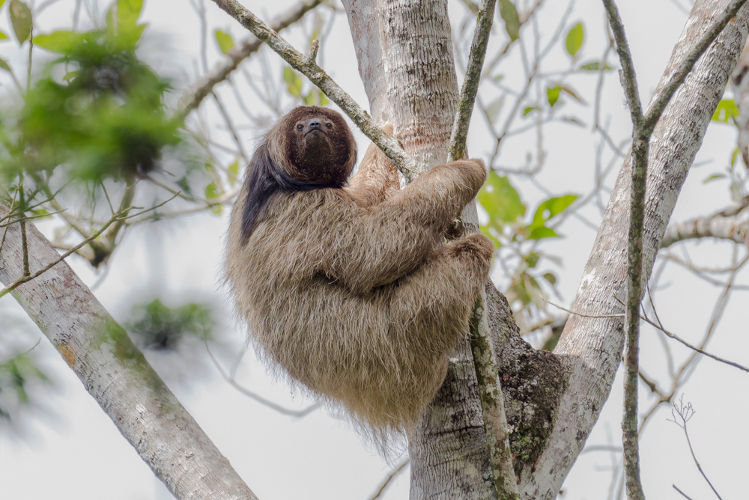 A preguiça-real apresenta a face mais clara que o topo da cabeça e os ombros. Essa espécie pode pesar até 7 kg.