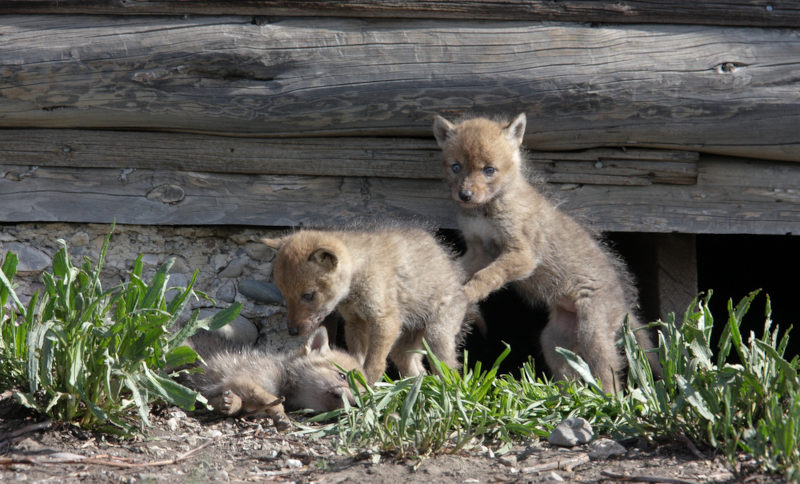 Nesses casos, os coiotes agem apenas aumentando as tocas quando necessário ou escavando túneis de fuga. Coiotes se comunicam por diferentes sinais, sendo muito vocais e apresentando diferentes tipos de chamadas.