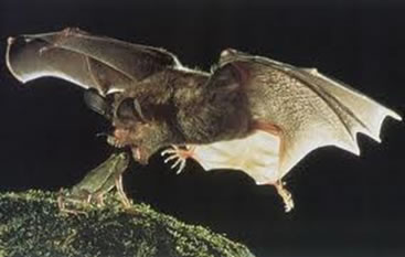 O morcego é um animal que sai à caça no período do amanhecer, anoitecer ou da noite. Por viver em total escuridão, ele utiliza a ecolocalização para se orientar, conseguindo localizar obstáculos e também suas presas. Na ecolocalização, esse animal emite sons com frequências muito altas (incapazes de serem ouvidas pelo ser humano), que quando batem em algum obstáculo, voltam ao animal em forma de eco, e assim ele consegue se orientar e saber a que distância se encontra o obstáculo à sua frente.