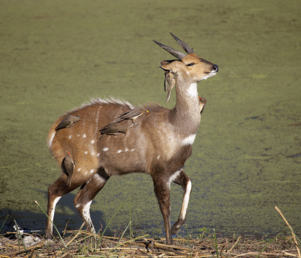 Outro exemplo de protocooperação pode ser observado entre o crocodilo e o pássaro-palito. Nessa interação, o pássaro come os restos de comida que são encontrados no interior da boca do crocodilo, conseguindo, assim, alimento. O crocodilo, por sua vez, fica livre do incômodo e evita a proliferação de uma grande quantidade de bactérias em sua boca. Muitos autores consideravam essa interação como uma forma de comensalismo até perceberem que ambos eram beneficiados.