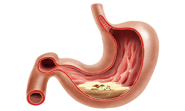 O estômago é um órgão que lembra uma bolsa, sendo uma porção dilatada do sistema digestório. Esse órgão recebe o bolo alimentar e mistura-o com uma secreção produzida por células de suas paredes: o suco gástrico. Entre as substâncias que compõem o suco gástrico, estão a pepsina, que atua na digestão de proteínas, e o ácido clorídrico, que atua garantindo que o ambiente estomacal seja favorável para a atuação da pepsina. Após sofrer a ação do suco gástrico, o bolo alimentar segue em direção ao intestino delgado e passa a chamar-se quimo.
