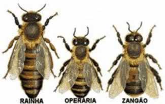 Na imagem podemos observar a diferença de tamanho entre a rainha, o zangão e a operária