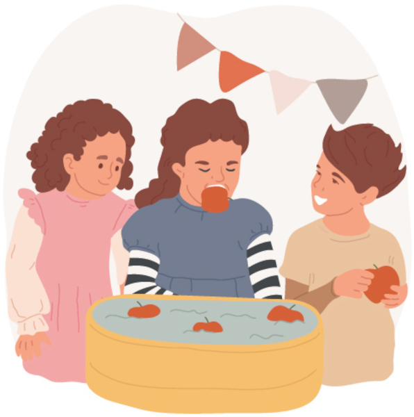 Na pescaria de maçã, os participantes deverão capturar o máximo de maçãs que estiverem dentro de uma bacia com água. As maçãs, por sua vez, não poderão ser capturadas com as mãos, somente com a boca. Os participantes devem mergulhar seu rosto na água para conseguir pescar as maçãs, e ganha a brincadeira aquele que pescar mais maçãs.
