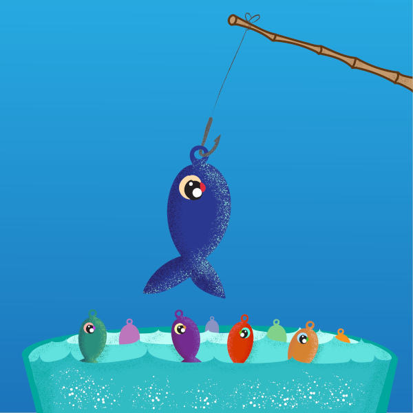 A pescaria simula uma pescaria de verdade, e nessa brincadeira um recipiente preenchido com água ou areia é utilizado. Os peixes podem ser de plástico ou de madeira, possuindo uma haste que permite que eles sejam fisgados. Os participantes da brincadeira devem usar varas de pescar, e aquele que pescar um grande número de peixes pode ser recompensado.