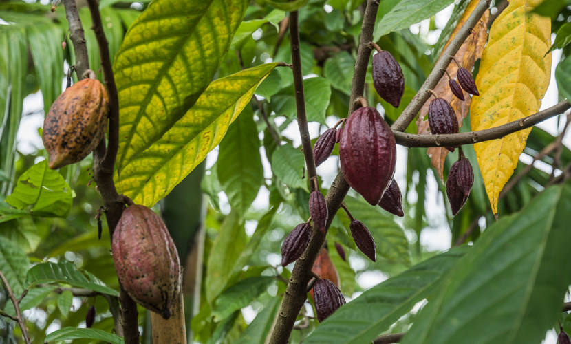 Cacau: seu fruto é utilizado na indústria alimentícia e cosmética, sendo esse matéria-prima para o chocolate.