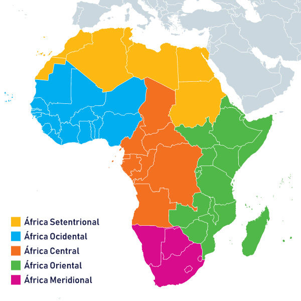 As regiões da África são as seguintes: África Central, África Meridional, África Setentrional, África Ocidental e África Oriental. A seguir, veja suas principais características.