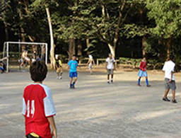 Garotos jogando futebol em praça pública