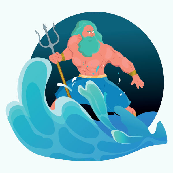 Por causa da sua cor, Netuno recebeu esse nome em homenagem ao deus romano dos mares. Na mitologia grega, ele é o equivalente a Poseidon.