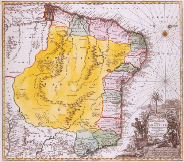 O mapa a seguir mostra a divisão do território brasileiro em capitanias hereditárias, logo no início da colonização.