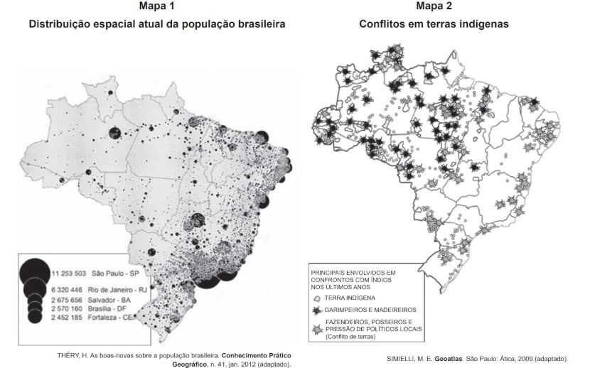 Os mapas representam distintos padrões de distribuição de processos socioespaciais. Nesse sentido, a menor incidência de disputas territoriais envolvendo povos indígenas se explica pela: