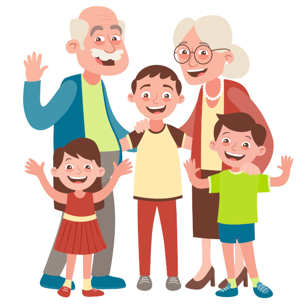 Junto a essa família que denominamos de núcleo familiar, há os parentes, que são membros da família do papai e da mamãe, como os avós paternos e maternos, tias, tios e primos.