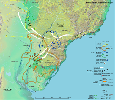 Desde o primeiro século de colonização, padres jesuítas espanhóis e portugueses construíram missões na zona de fronteira entre os dois reinos na América segundo o Tratado de Tordesilhas. Dessa forma, eles mantinham os indígenas longe da colonização e da escravidão.