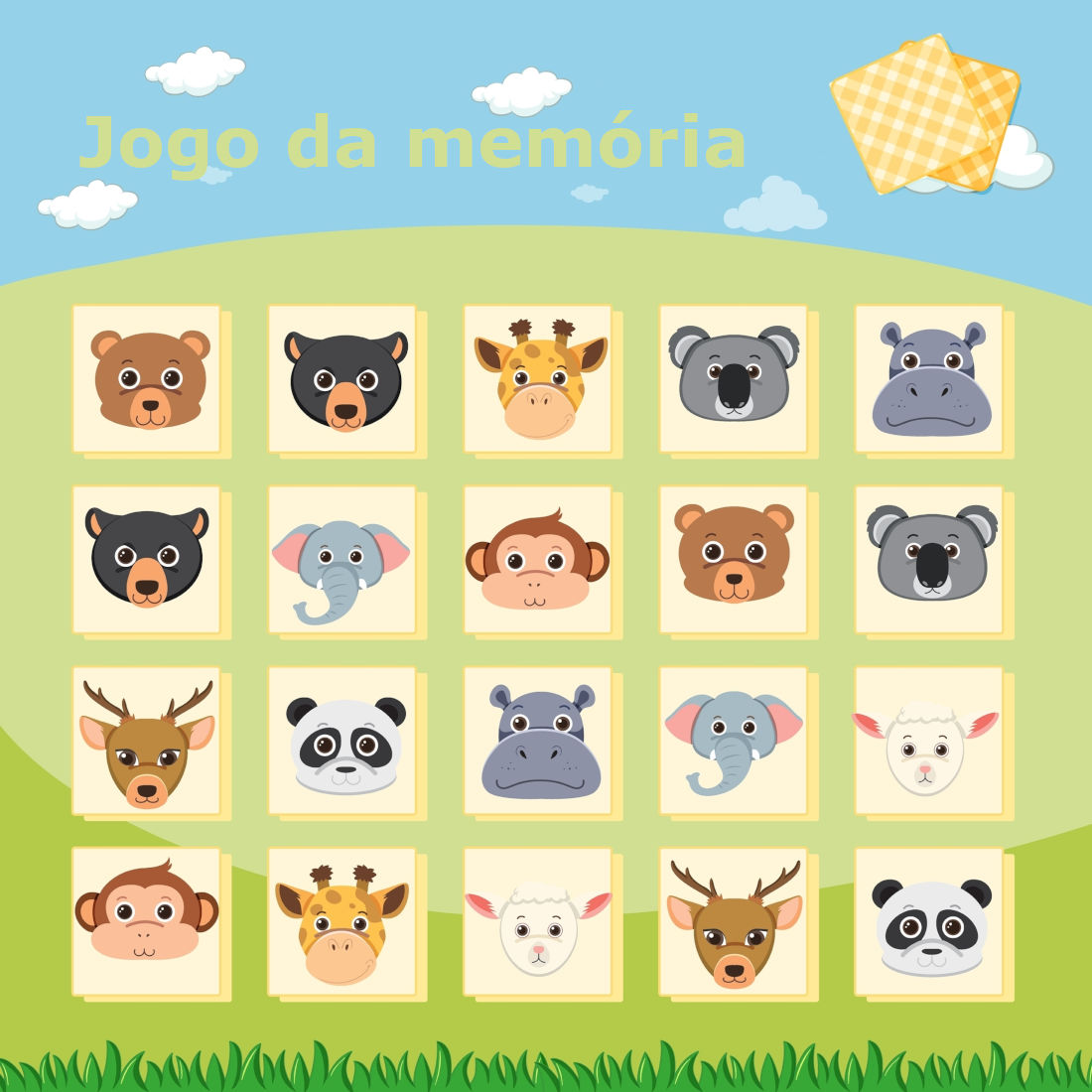 Você pode baixar o jogo da memória em PDF, imprimir e até plastificar para brincar sempre que quiser! As crianças se divertem encontrando os pares enquanto desenvolvem memória e atenção.