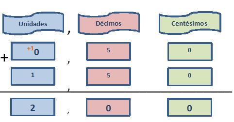 Então temos que somar mais uma unidade na casa das unidades, pois, com 10 décimos, nós completamos 1 unidade.