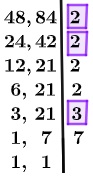 1º passo: realizar a decomposição de ambos os números e encontrar os fatores que os dividem simultaneamente.