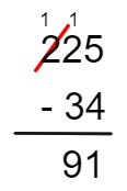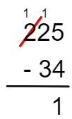 2º passo: calcular a diferença entre as unidades, 5 – 4 = 1.