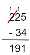 3º passo: calcular a diferença entre as dezenas, mas note que 2 é menor que 3, então, nesse caso, vamos transformar uma centena em dezena: