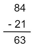3º passo: por fim, faremos a subtração entre as dezenas, 8 – 2 = 6 dezenas. Então, escreveremos o resultado da seguinte maneira: